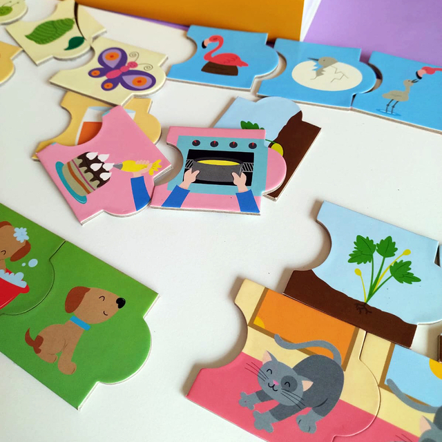 Este jugo de rompecabezas de 3 piezas es ideal para estimular el pensamiento lógico. Cada pieza se une siguiendo secuencias lógicas, estimula motricidad y la asociación.