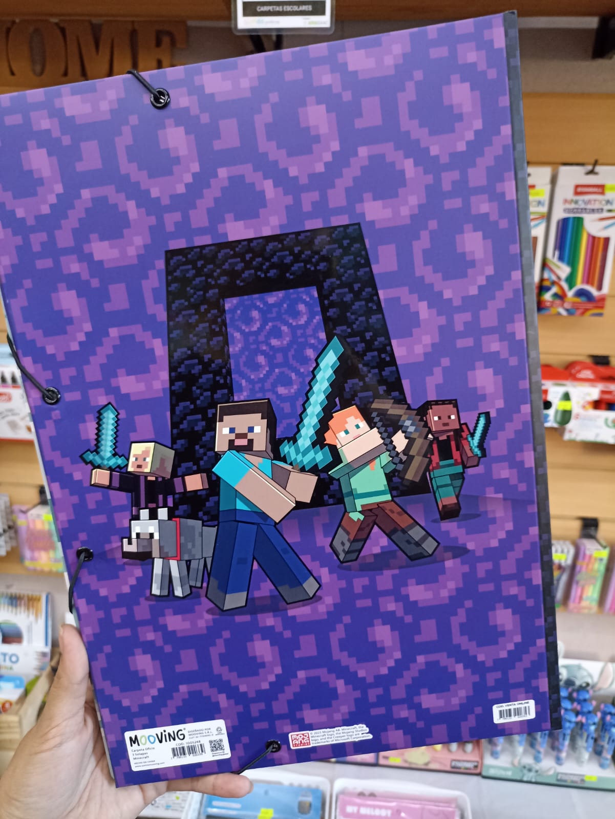La Carpeta Dibujo 3 Solapas Oficio de Mooving, con un encantador diseño de Minecraft, es la opción ideal para quienes buscan combinar funcionalidad y estilo. Con un tamaño de 36.4 cm de largo y 25.5 cm de ancho, esta carpeta es perfecta para hojas tamaño oficio, permitiendo organizar tus dibujos y documentos de manera eficiente.