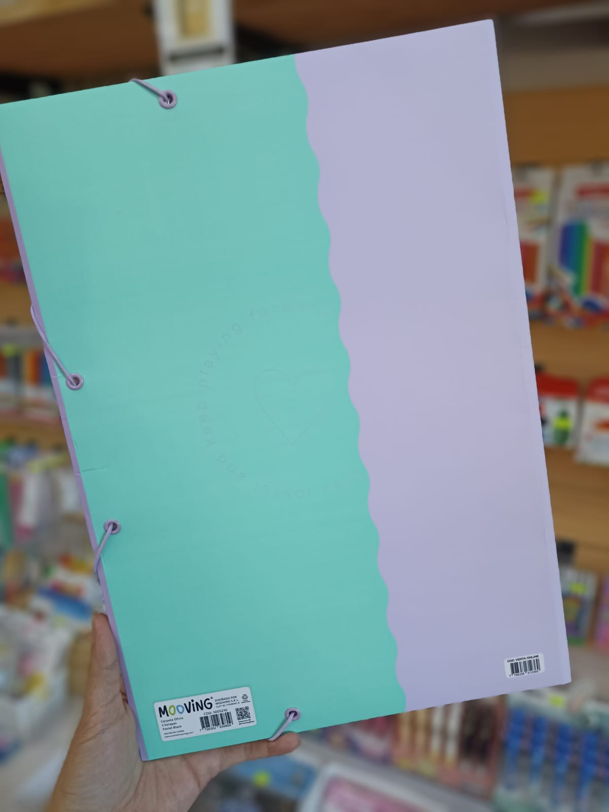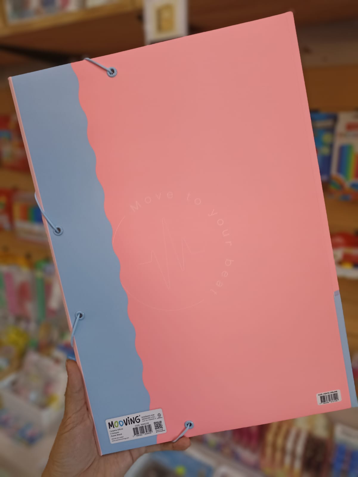La Carpeta Dibujo 3 Solapas Oficio de Mooving, con un encantador diseño de Pastel block de Mooving, es la opción ideal para quienes buscan combinar funcionalidad y estilo. Con un tamaño de 36.4 cm de largo y 25.5 cm de ancho, esta carpeta es perfecta para hojas tamaño oficio, permitiendo organizar tus dibujos y documentos de manera eficiente.
