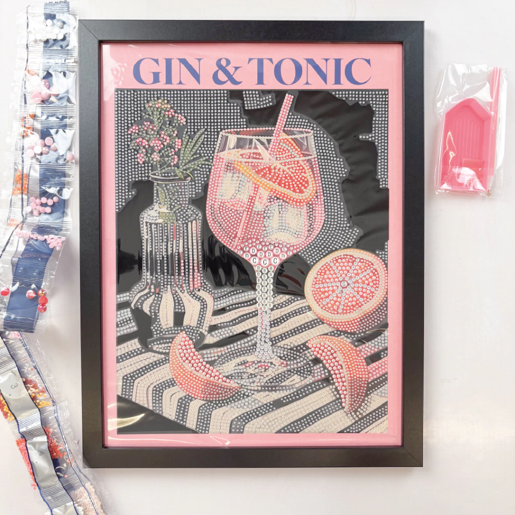 Descubrí el Gin Tonic – Cuadro Diamond Painting Especial 30x40cm, la forma perfecta de crear tu propio arte luminoso y sofisticado. Este kit único incluye un canvas de pana listo para colgar, ya enmarcado para tu comodidad.