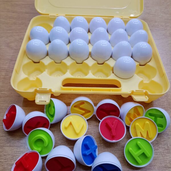 ¡Diversión portátil con aprendizaje garantizado! Este práctico maletín contiene 26 huevitos educativos para que los peques puedan jugar, explorar y aprender en cualquier lugar.