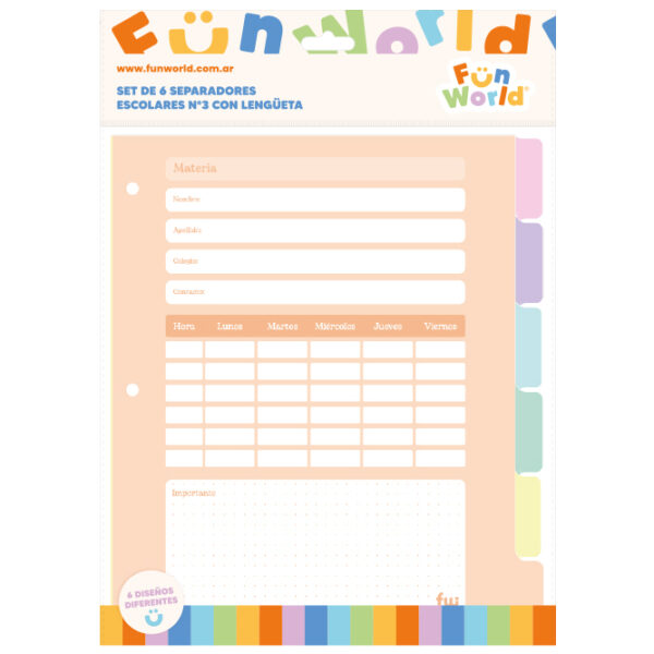 Separador de Materia Nº 3 x 6 hs c/lengueta – Cool
