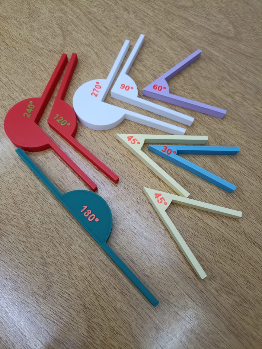 Juego de enseñanza de ángulo matemático de 9 piezas-30 ° /60 ° /90 ° /45 ° /120 ° /180 ° /240 ° /270 ° Herramientas de aprendizaje de geometría para niños, reconocimiento de ángulo